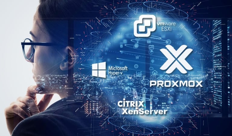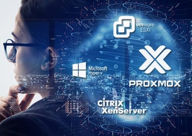 Diseñamos e implementamos entornos de servidores virtualizados en Linux y Windows, maximizando el uso de recursos hardware, mejorando la disponibilidad y simplificando la administración y las copias de seguridad de sus sistemas críticos.